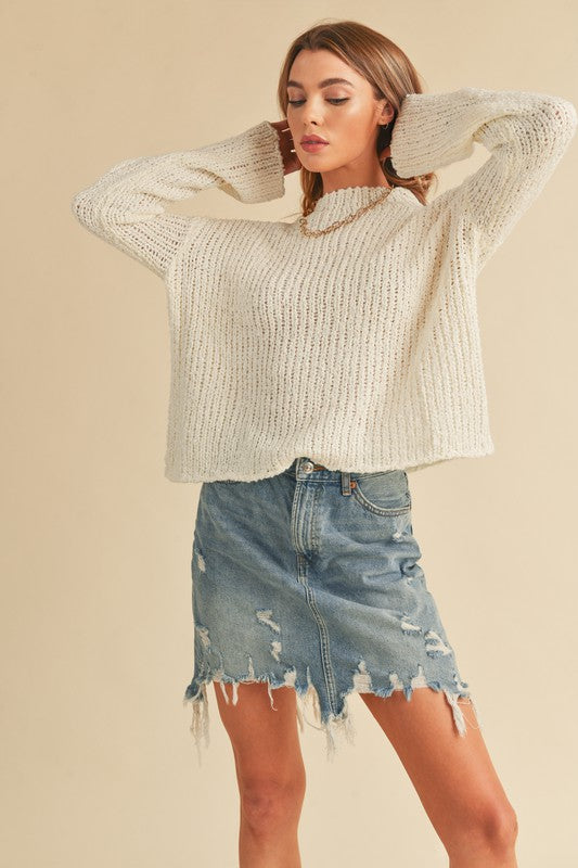 Experience the ultimate in snug luxury with our knit Irma sweater. Embrace the colder days ahead with its mock neck, boxy fit adds a modern flair. Crafted with the coziest and softest materials, you'll find yourself reaching for this sweater again and again. Elevate your winter wardrobe with this must-have piece, perfectly suited for any casual or sophisticated ensemble.