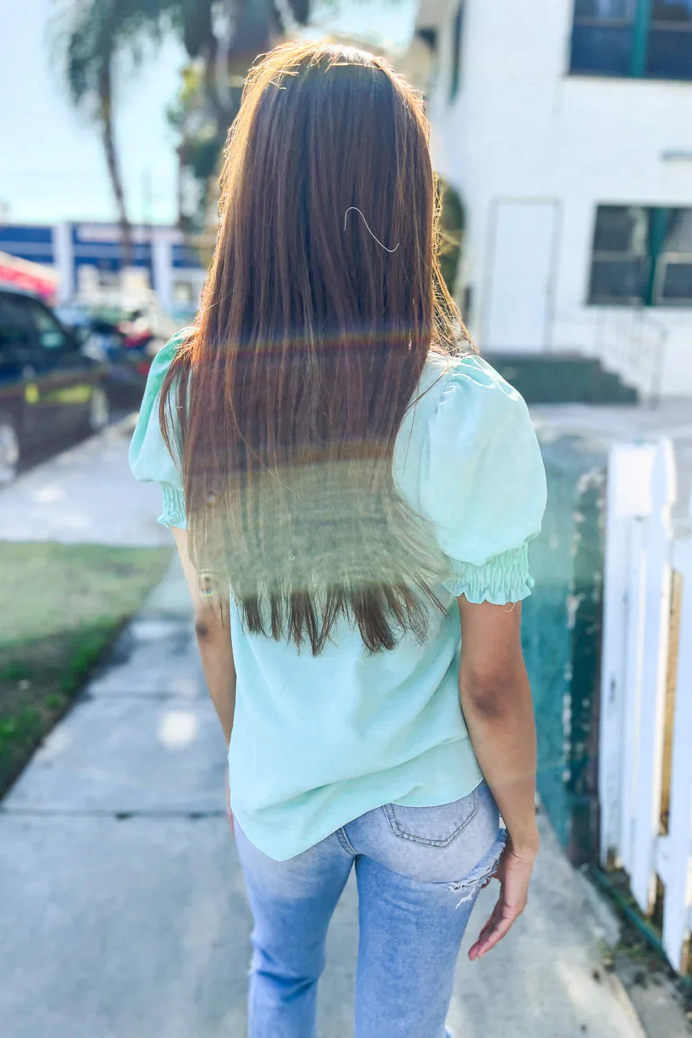 Look elegant and put together with this notched neck blouse featuring smocked short sleeves and front seam details. Slightly textured with a smooth, silky feel, this blouse will look flattering on any body type.