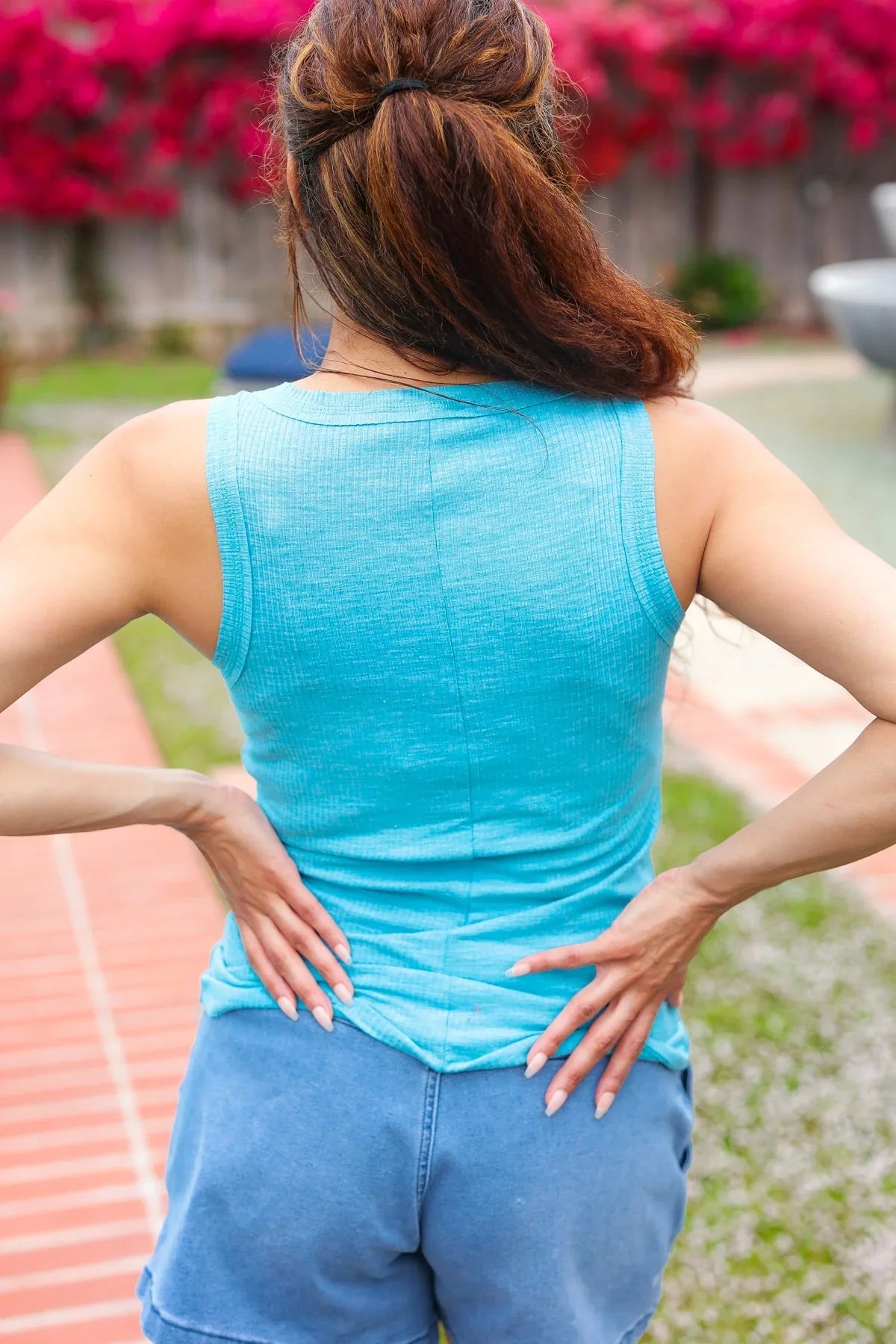 Summer Days Ice Blue Melange Ribbed Henley Button Down Tank