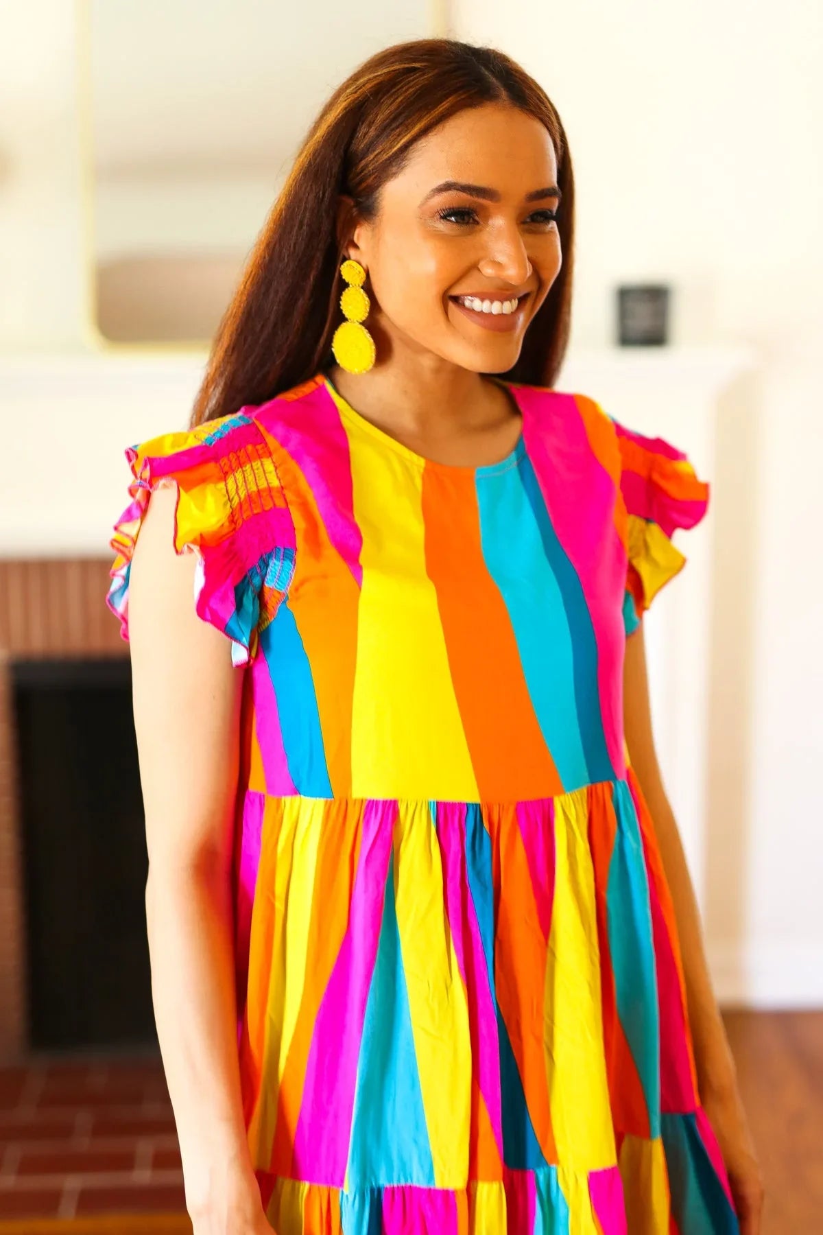These yellow and gold beaded earrings designed in a round pendant dangle design are a must-have this summer. Perfect for any occasion!