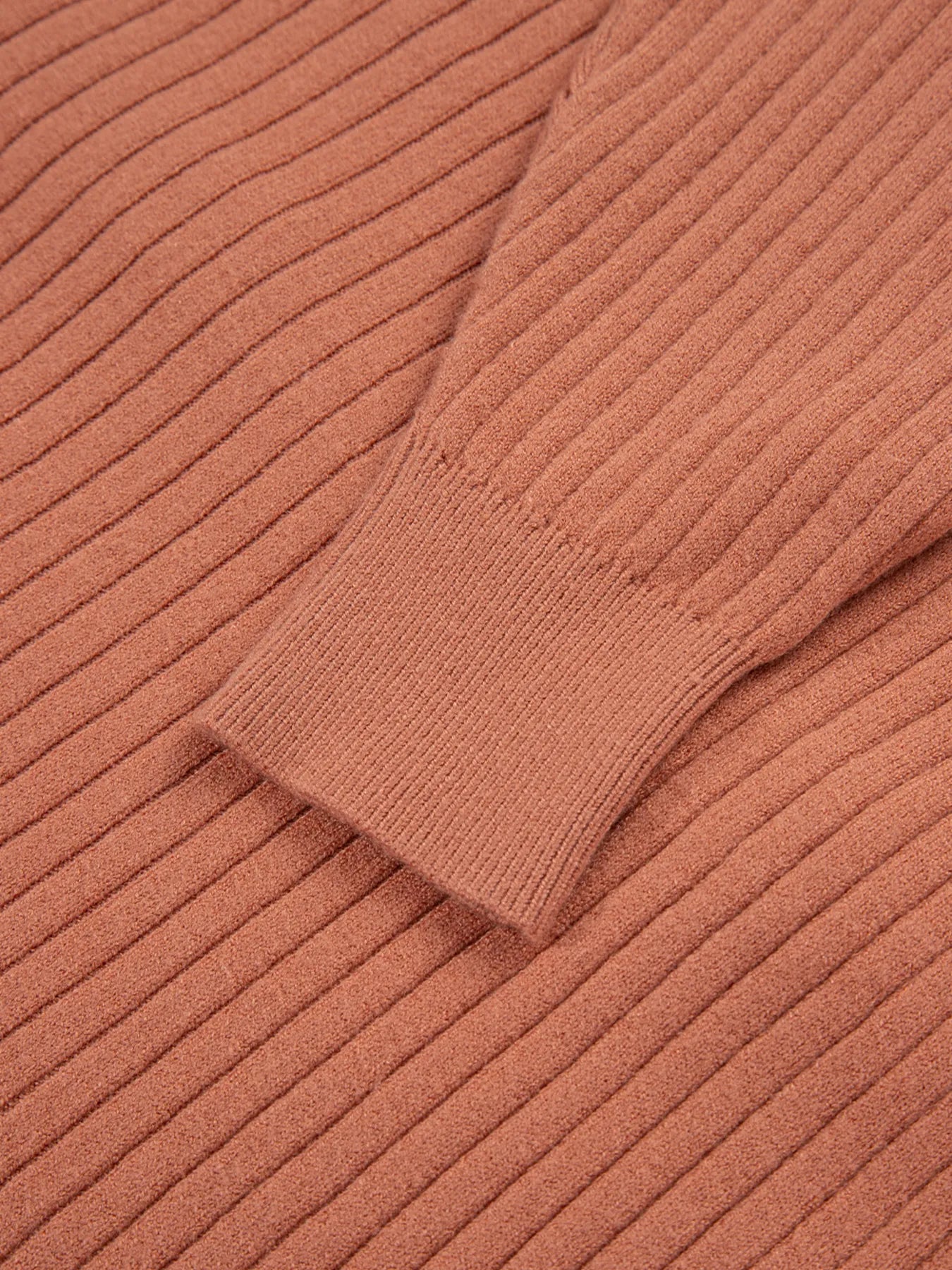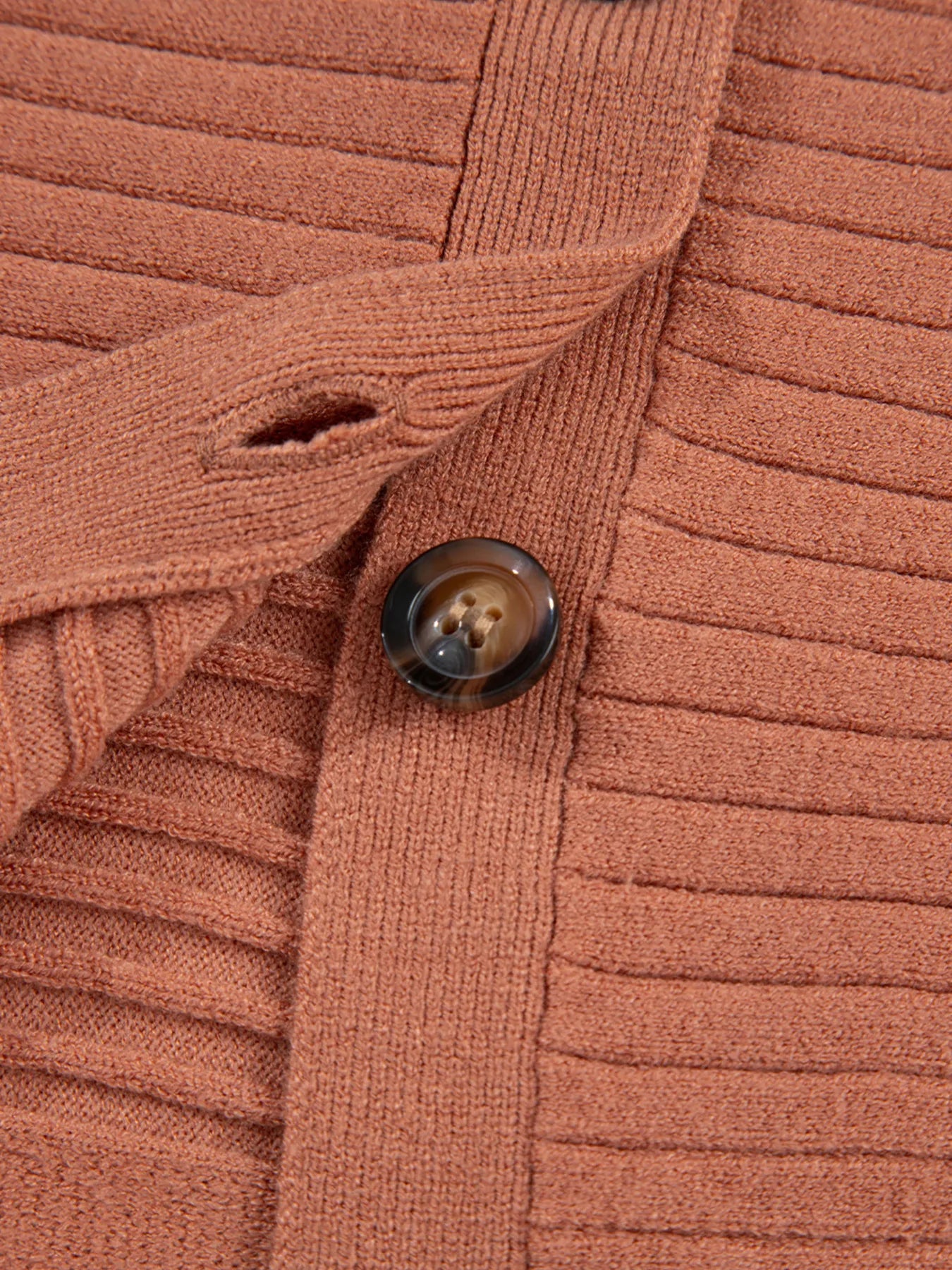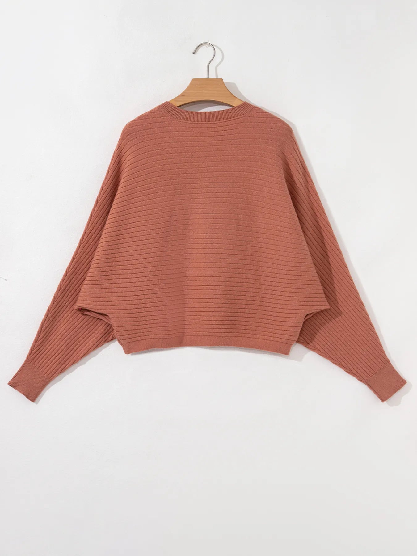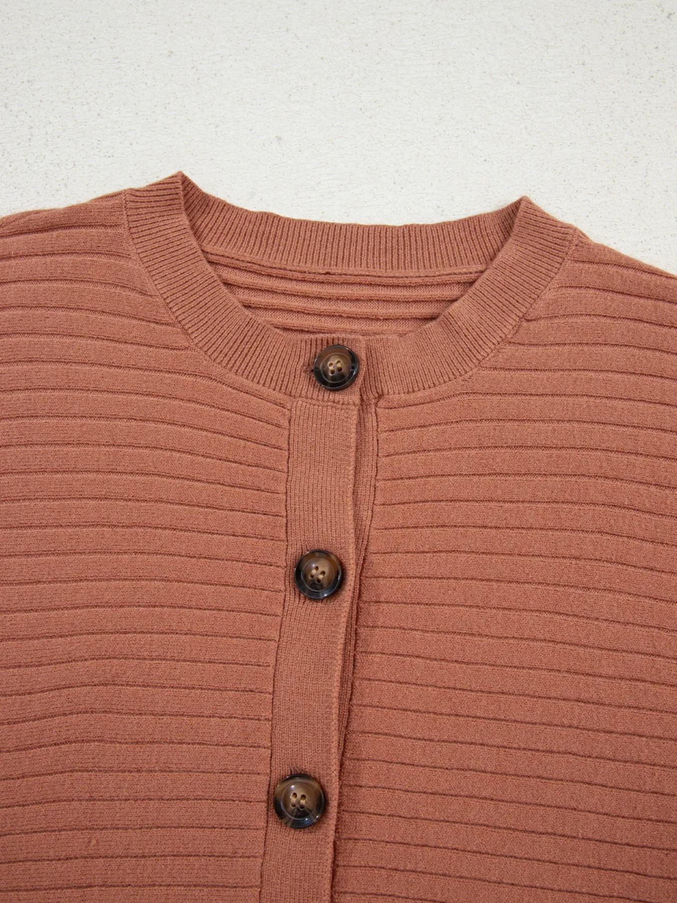 Women’s Burnt Coral Rib Knit Button Front Dolman Sleeve Cardigan Sweater