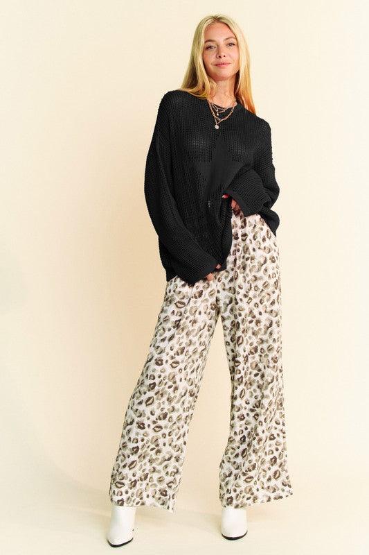 Davi & Dani Star Front Crochet Drop Shoulder Knit Top