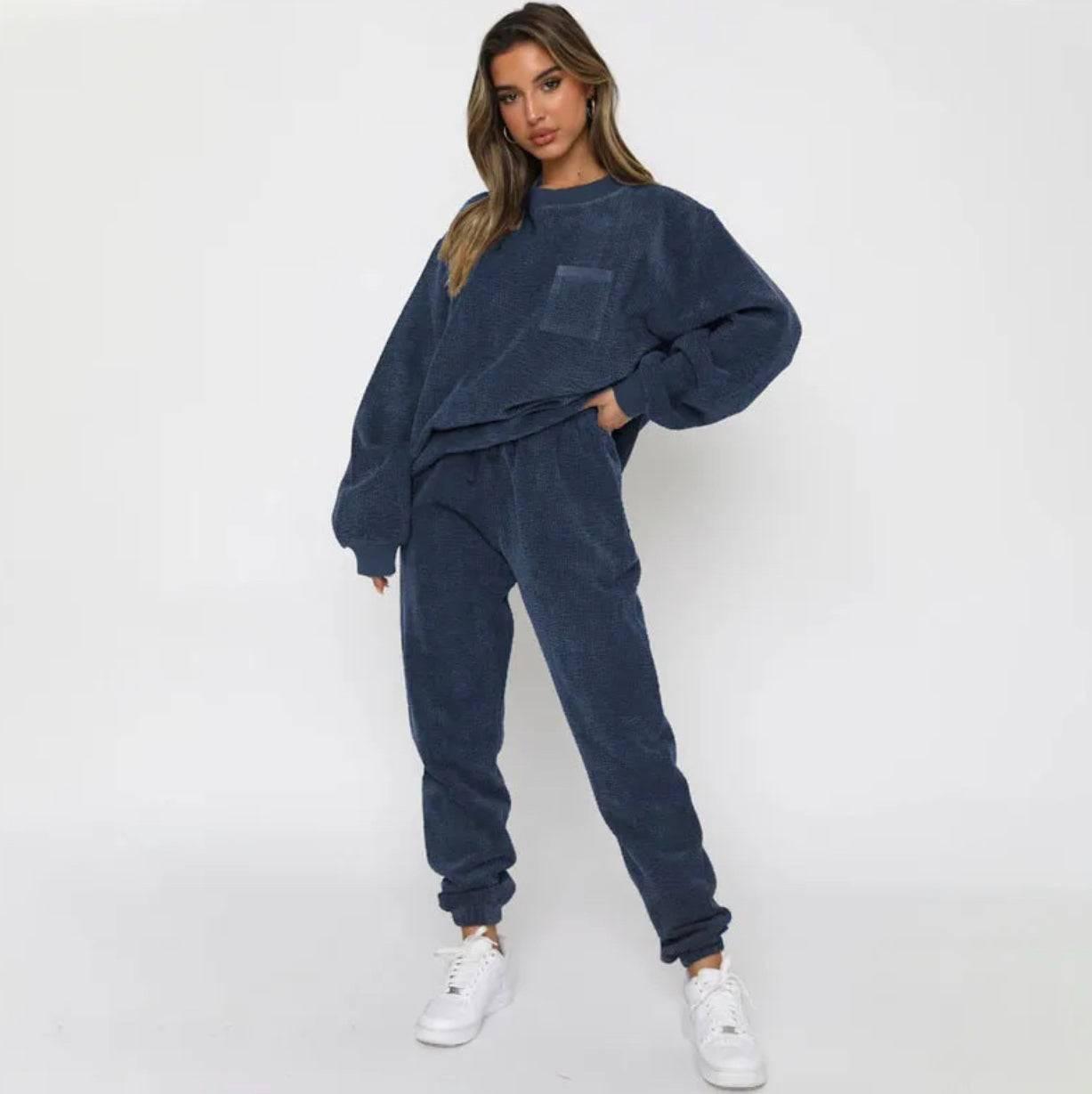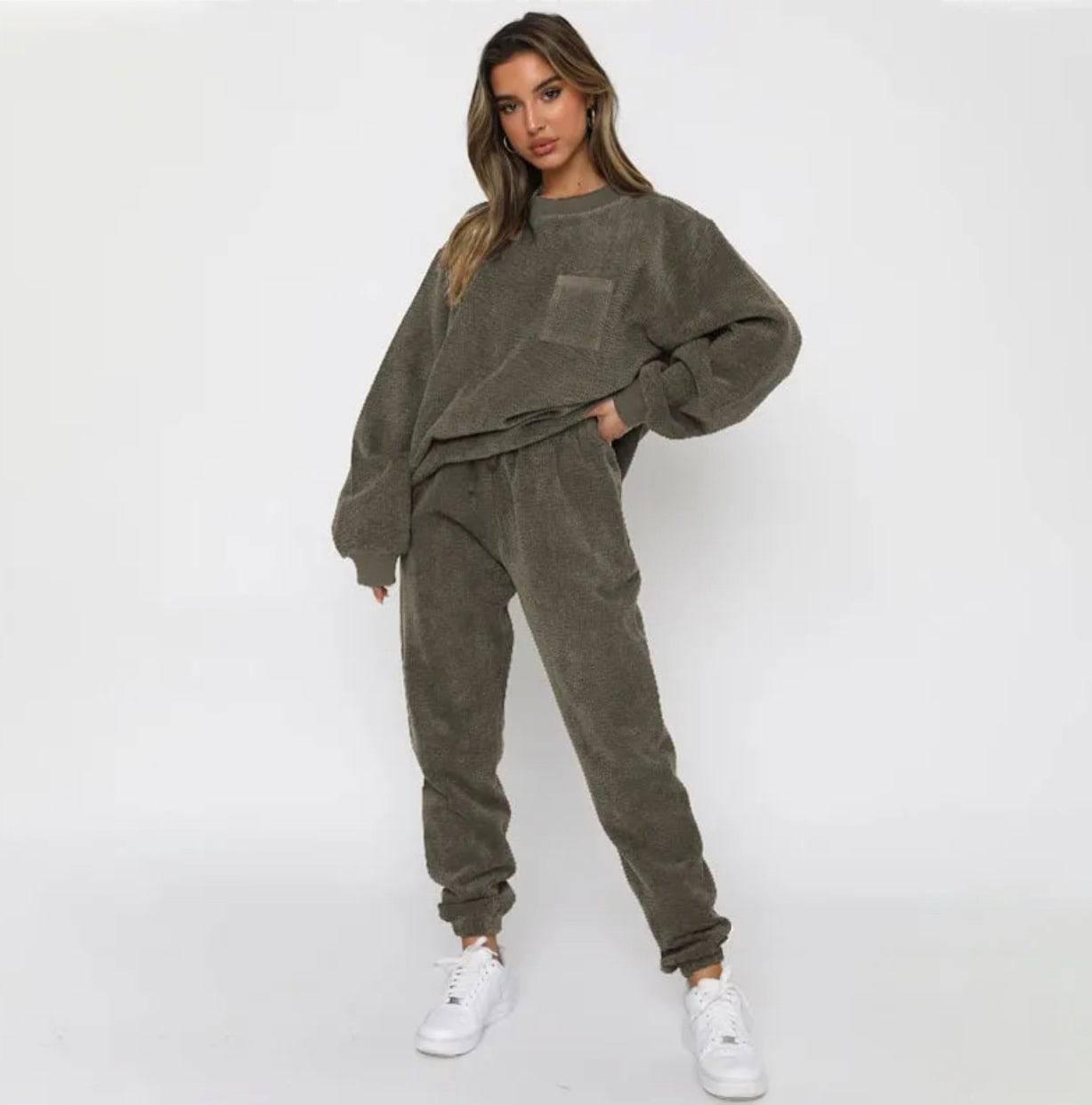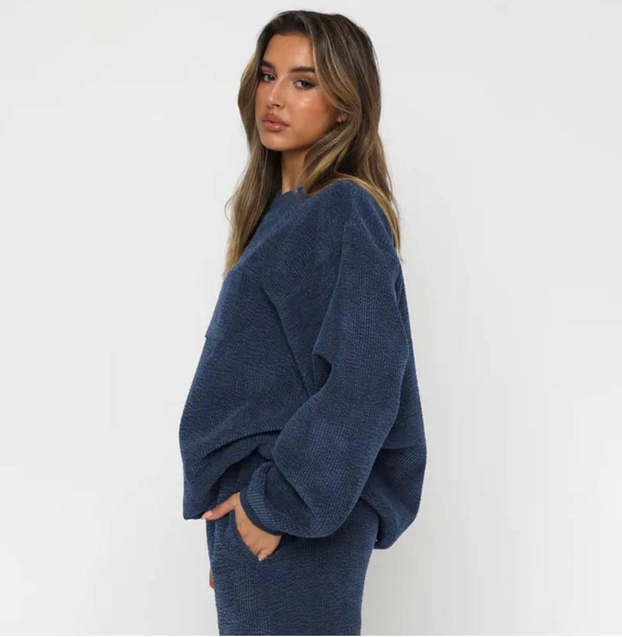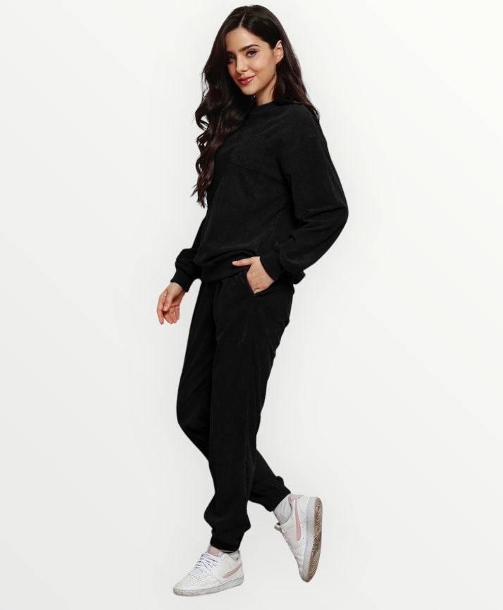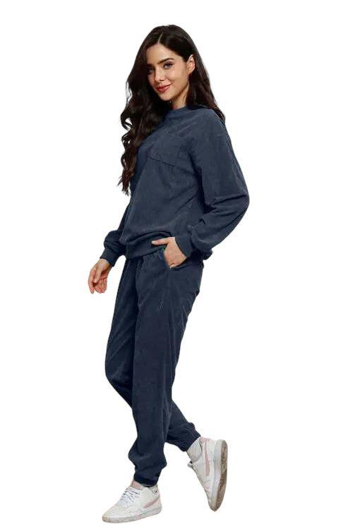 The versatility of our two-piece corduroy lounge set allows you to wear the pieces together as a coordinated set or mix and match them with other items in your wardrobe. Pair the top with jeans or leggings for a casual yet put-together look, or style the corduroy bottoms with a cozy sweater for added warmth.