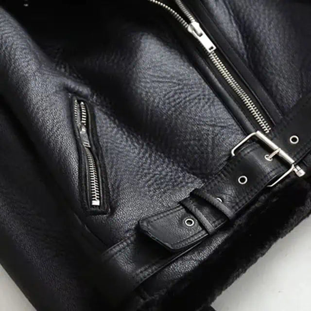 Vegan Shearling Lined Faux Leather Biker Jacket