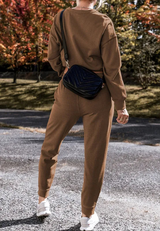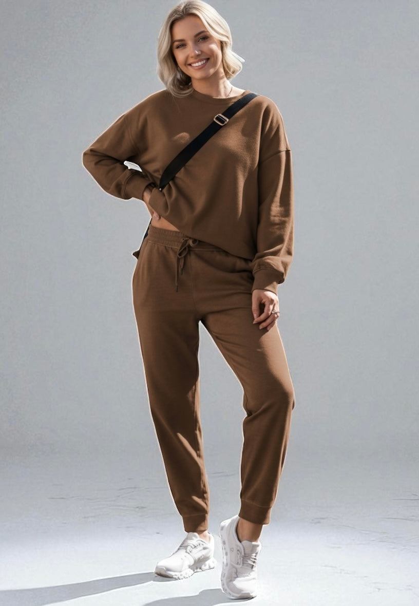 Side Slit Round Neck Long Sleeve Top and Pants Set