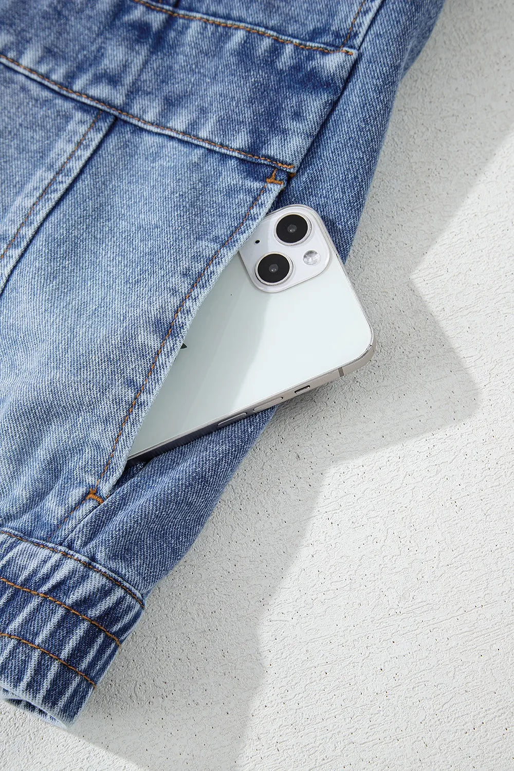 Button Up Cap Sleeve Denim Jacket