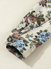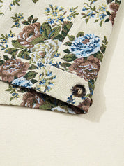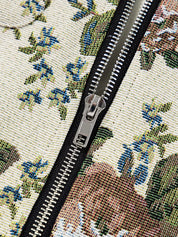 Vintage Floral Print Zip Up Contrast Collared Jacket