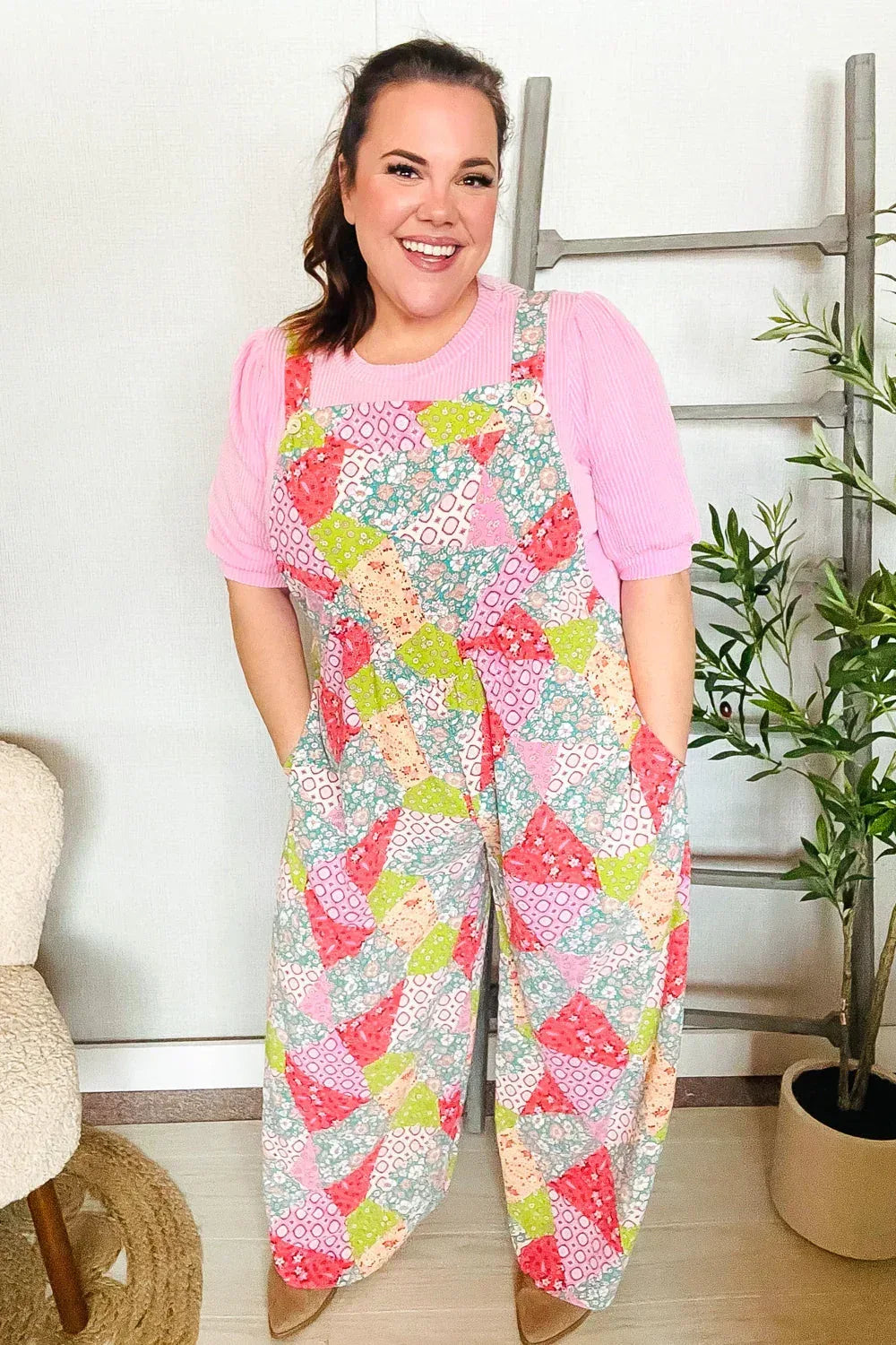 Stand Out Multicolor Boho Patchwork Wide Leg Overall Jumpsuit