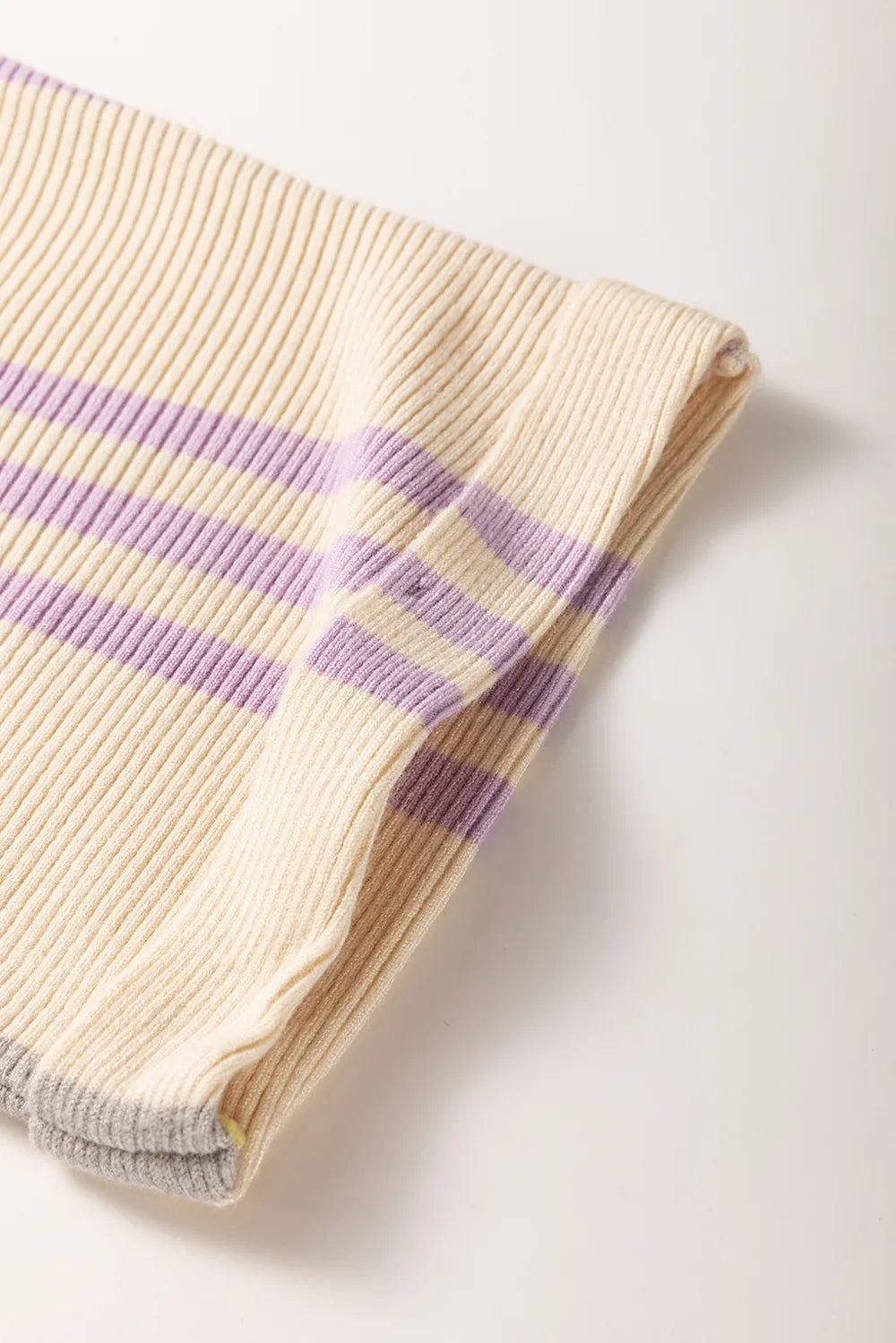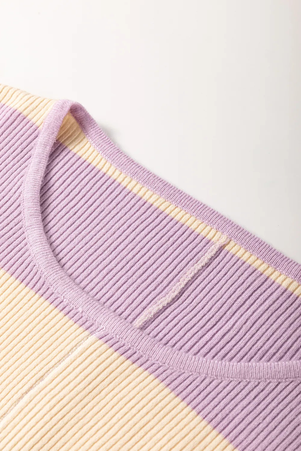 Contrast Striped Round Neck Three-Quarter Sleeve Top