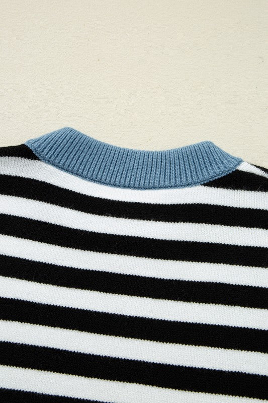 Striped Colorblock Patchwork Long Sleeve Sweater