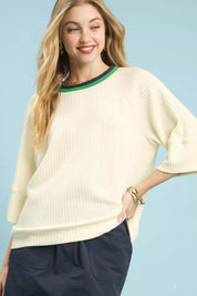 Umgee Ribbed Knit Top with Contrast Trim