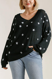 Umgee Full Size Star V-Neck Long Sleeve Sweater Plus Size