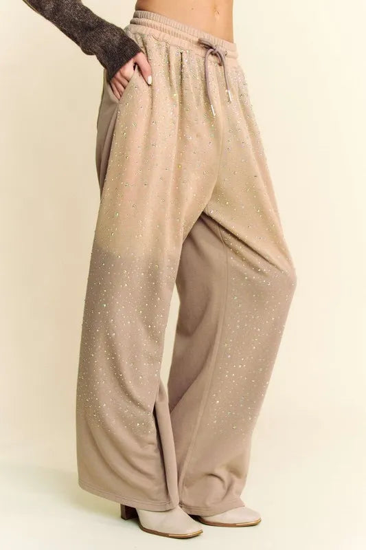 Davi & Dani Rhinestone Drawstring Wide Leg Pants