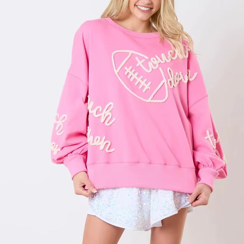 Football & Letter Round Neck Long Sleeve Sweatshirt