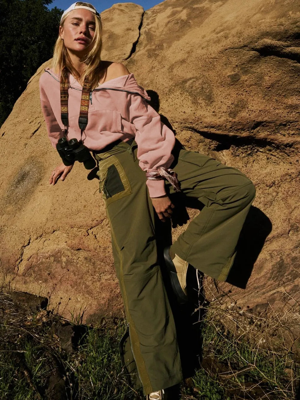 Half Zip Pocketed Dropped Shoulder Hoodie