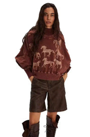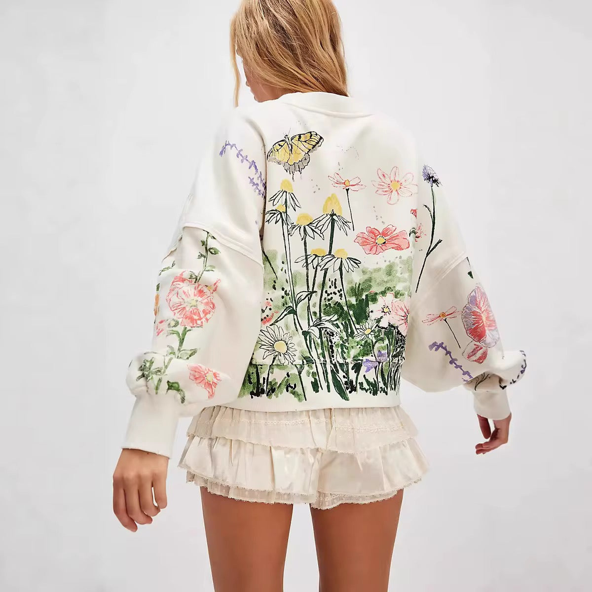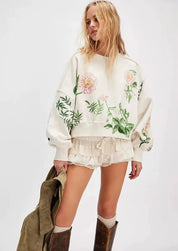 Printed Round Neck Dropped Shoulder Sweatshirt