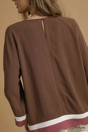 Umgee Scalloped Hem Color Block Top