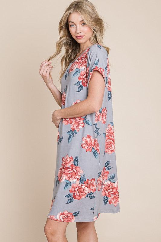 The Floral Round Neck Short Tee Dress with Pockets is a casual and comfortable piece perfect for everyday wear. The round neckline offers a classic and easy-to-wear style. The floral print adds a touch of charm and femininity to the dress. With the addition of pockets, this tee dress combines style with functionality, providing a practical element for carrying small essentials. Perfect for a relaxed and effortless look, this dress is a great choice for running errands or enjoying a casual day out.