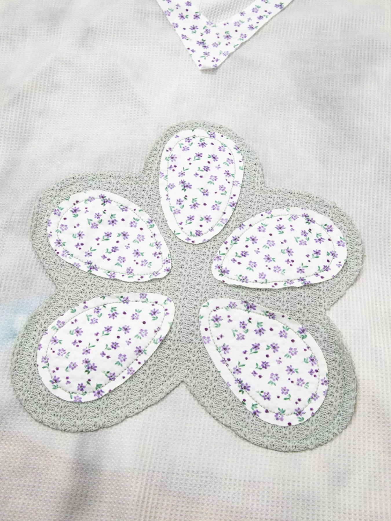Floral Patched Waffle Textured V Neck Casual Hooded Top
