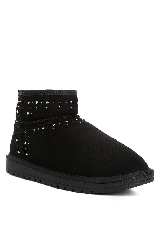 Add a touch of nostalgia and comfort to your shoe collection this year. These rhinestone embellsiehd ankle length boots are trendy, perfectly Y2K, functional for all of your outfits. The best way to dress these up would be with a laced cami and mini skirt in classic 2000s style!