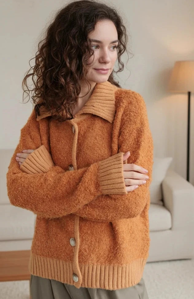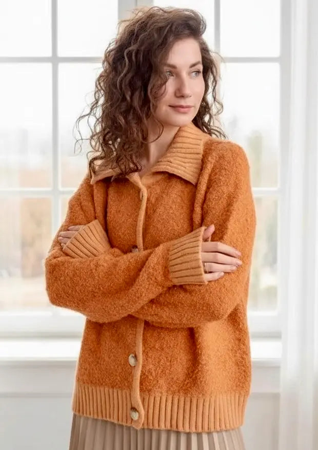 Daverri Fashions Collared Neck Button Down Long Sleeve Cardigan