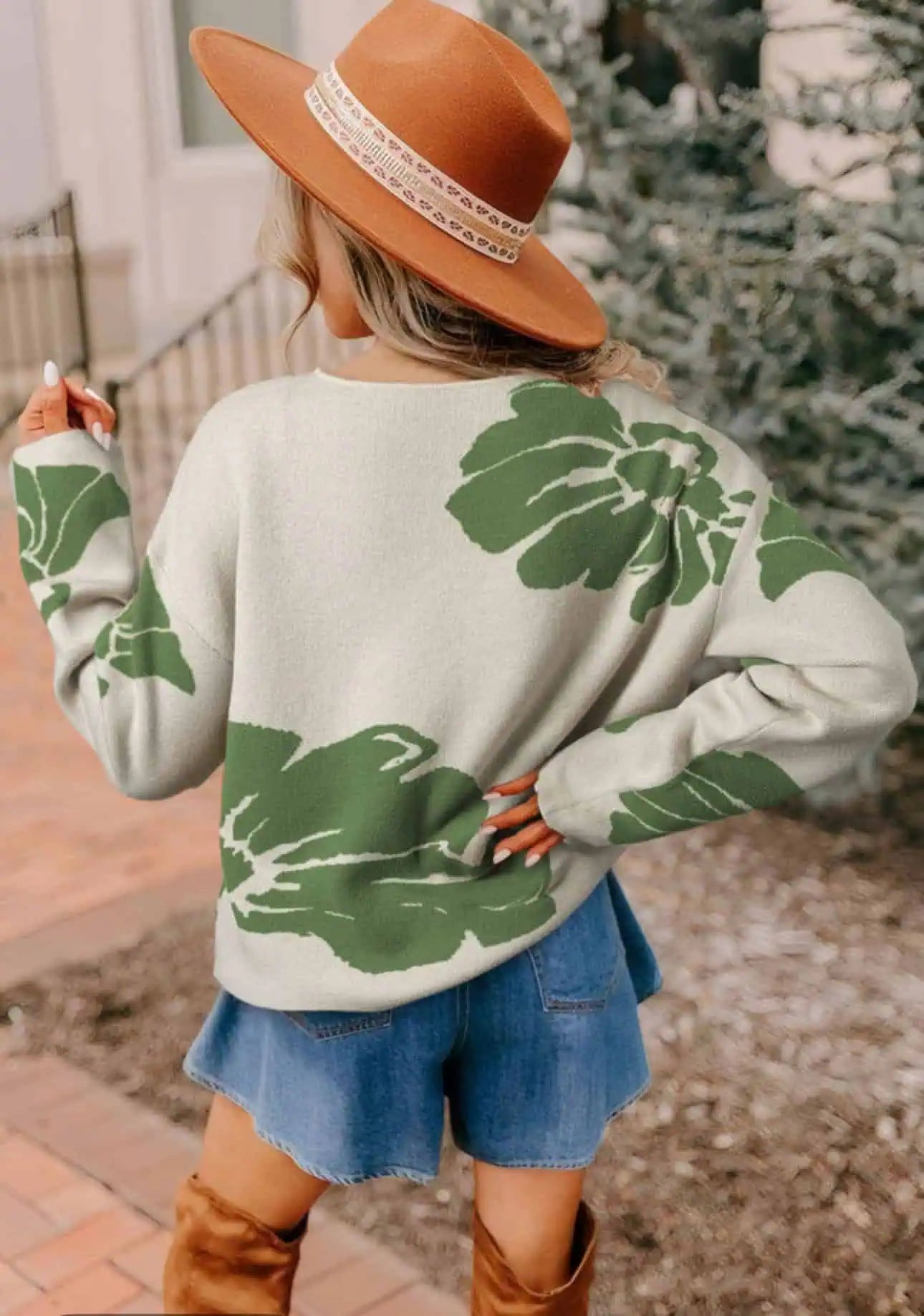 Leaf Round Neck Long Sleeve Sweater