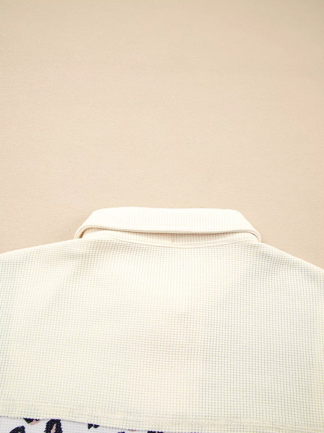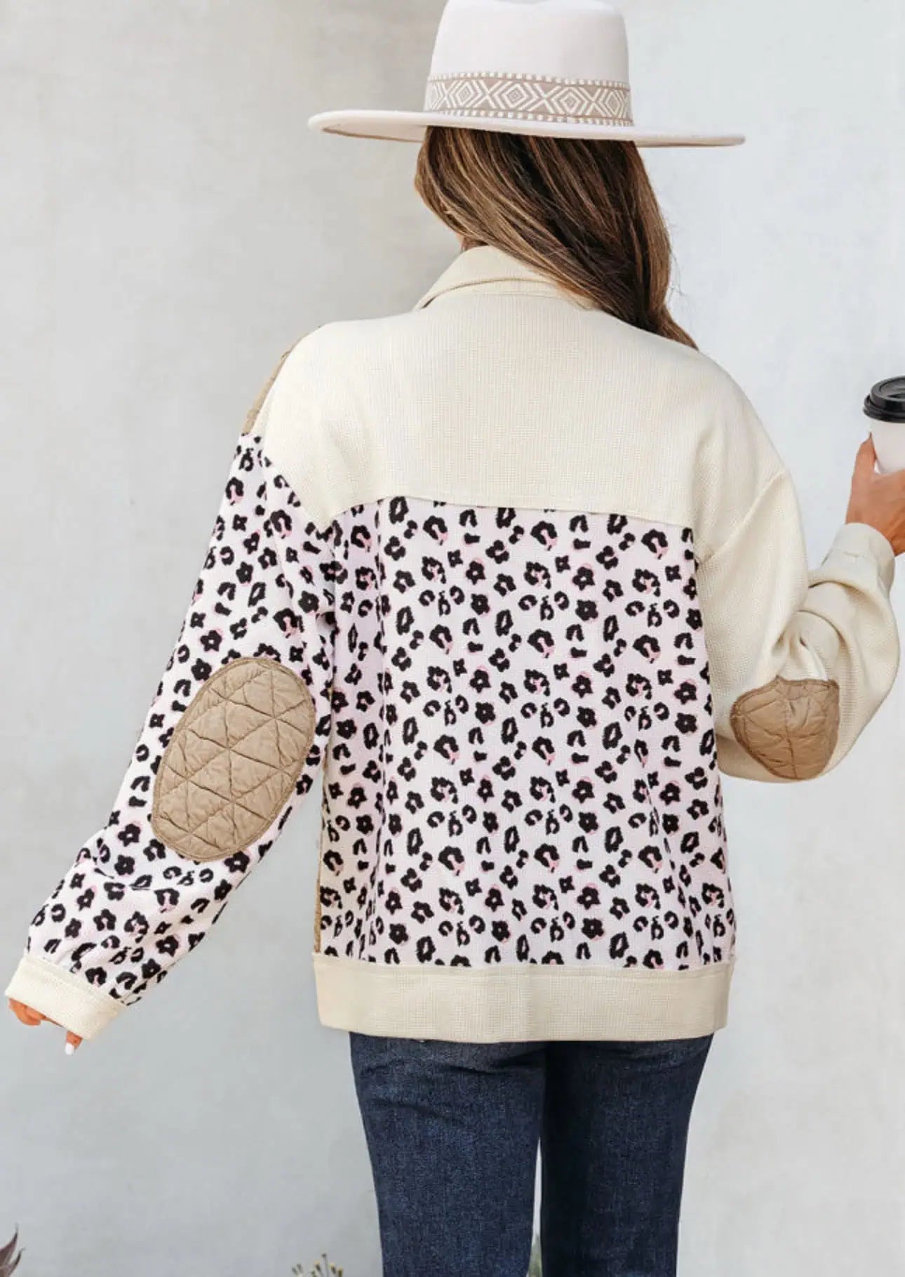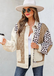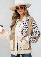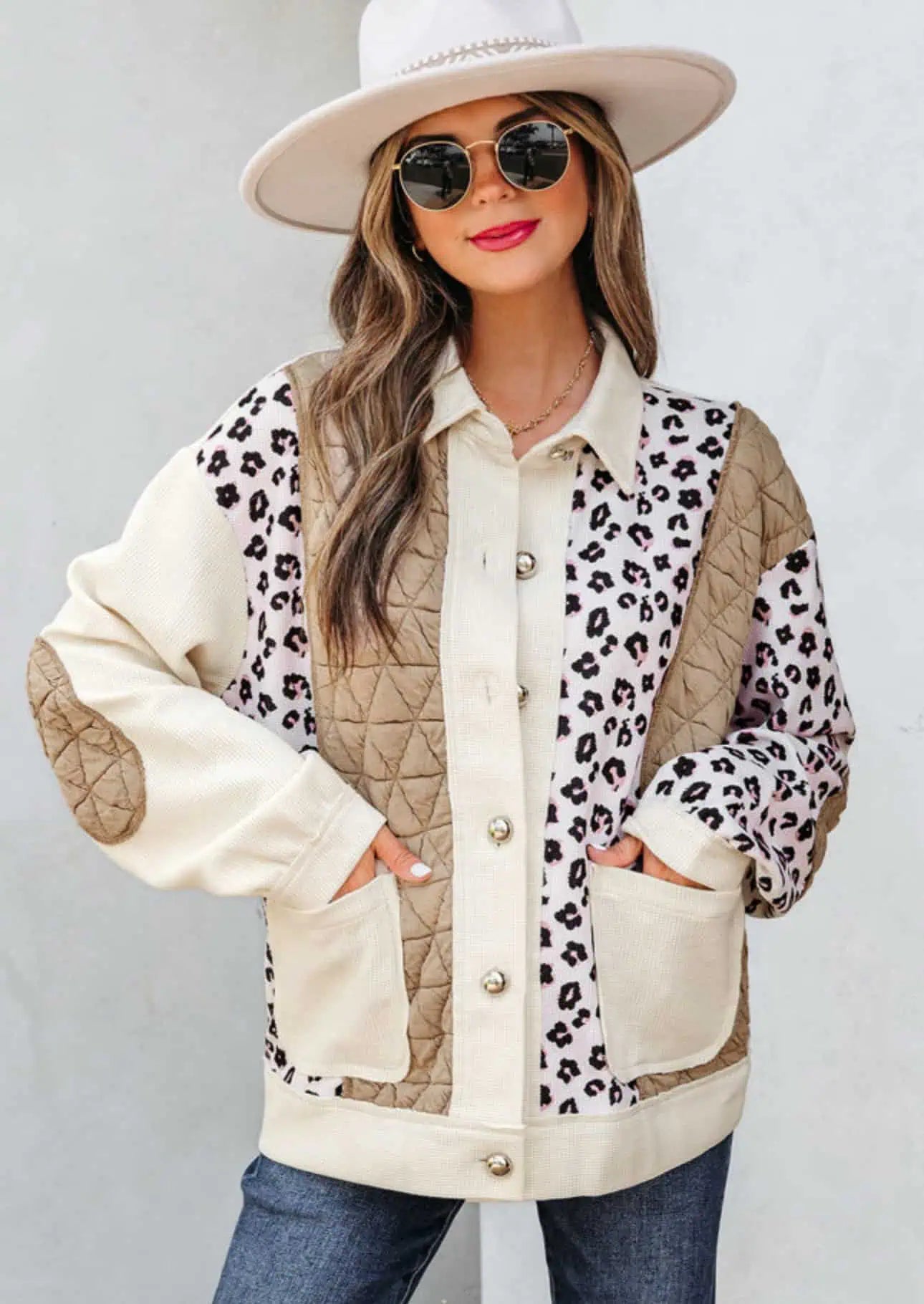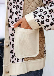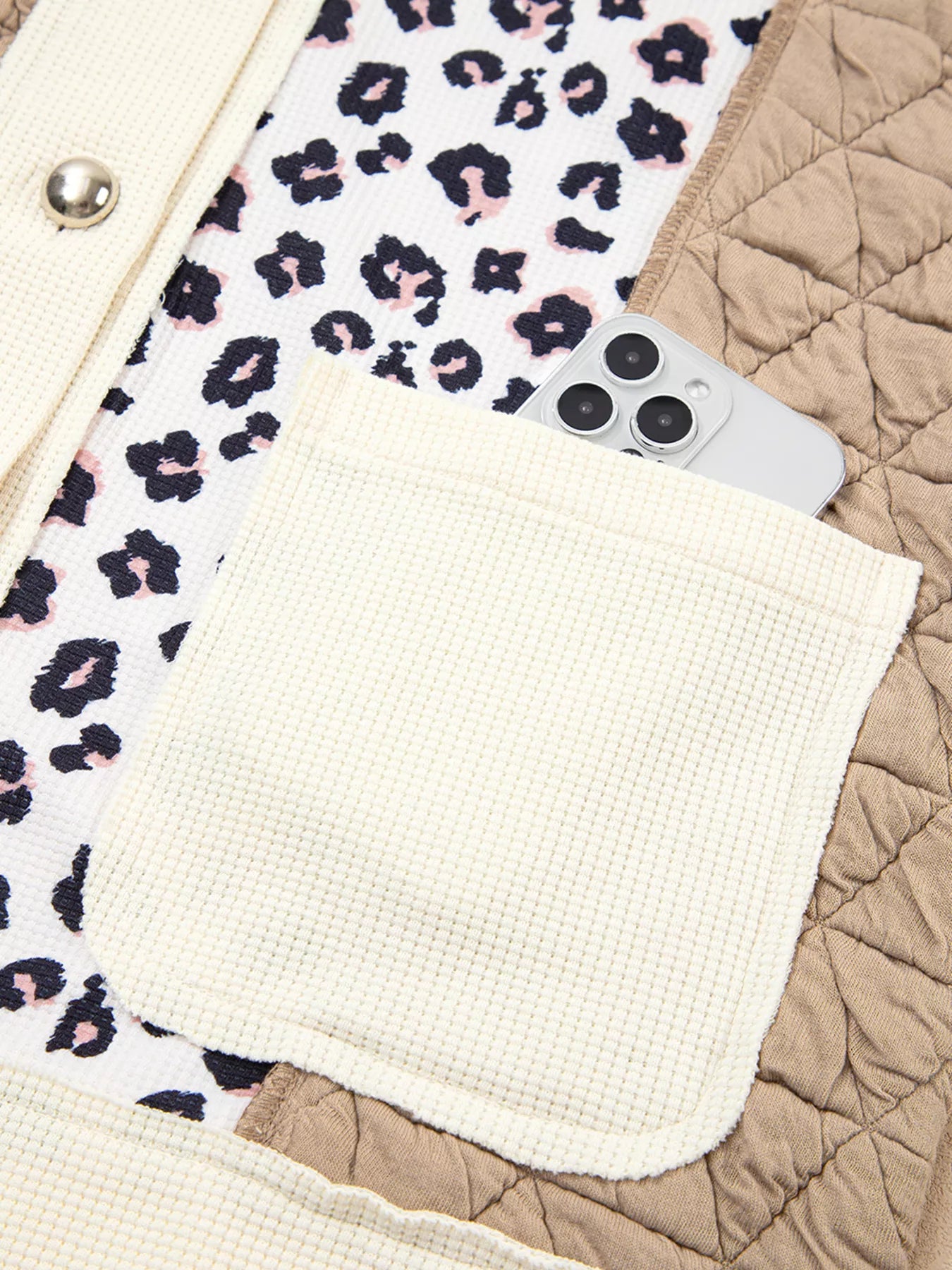 Leopard Waffle Quilted Patchwork Button Front Jacket