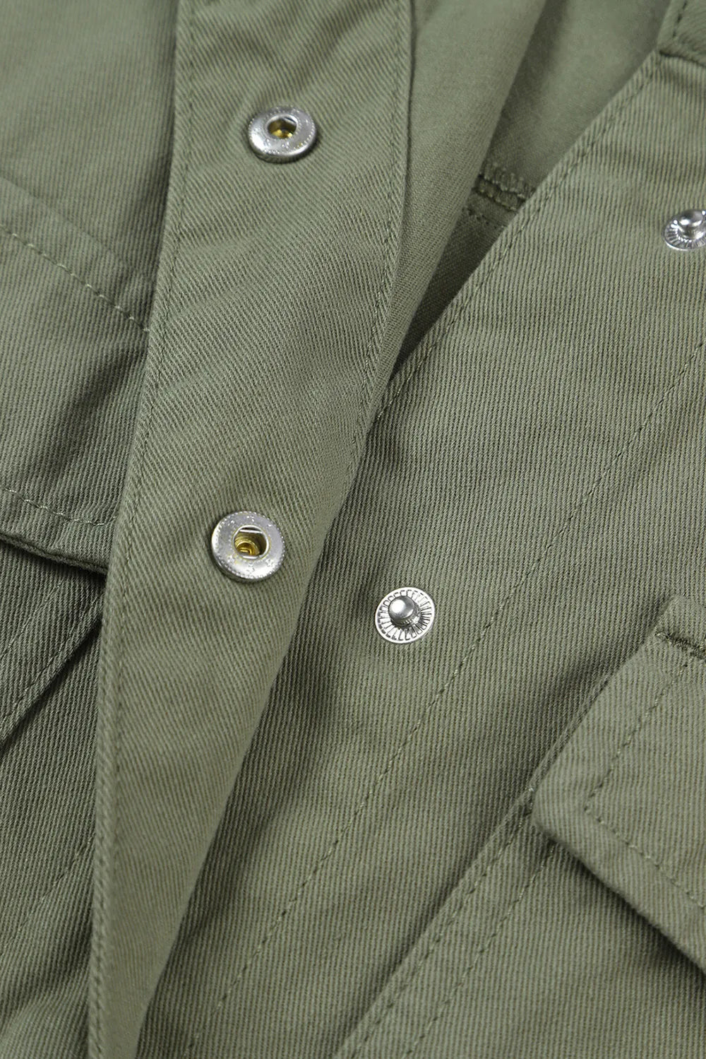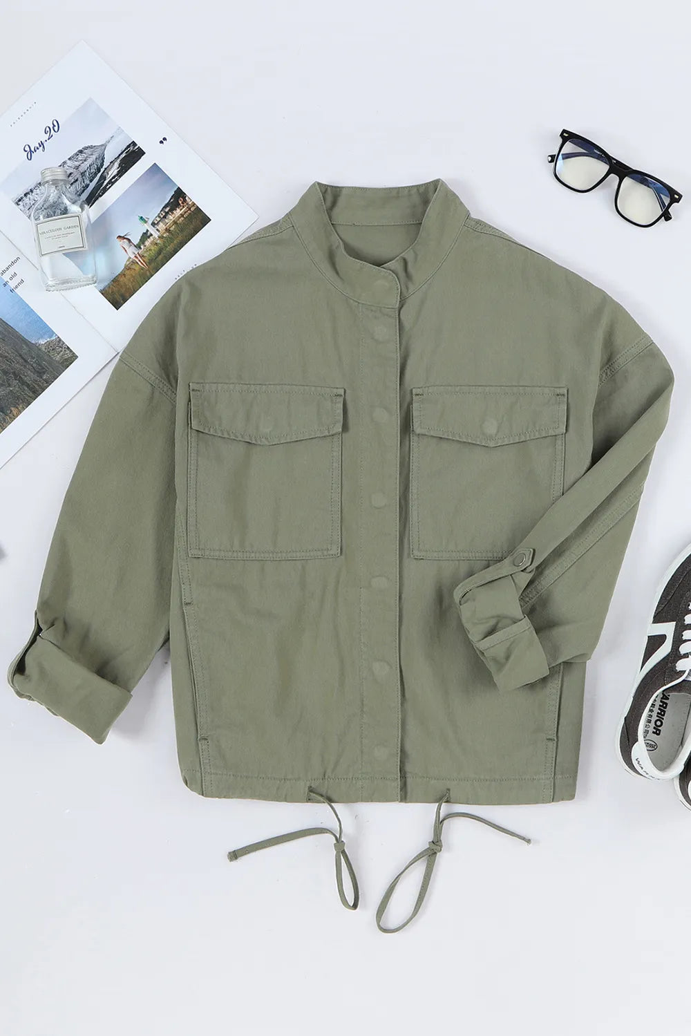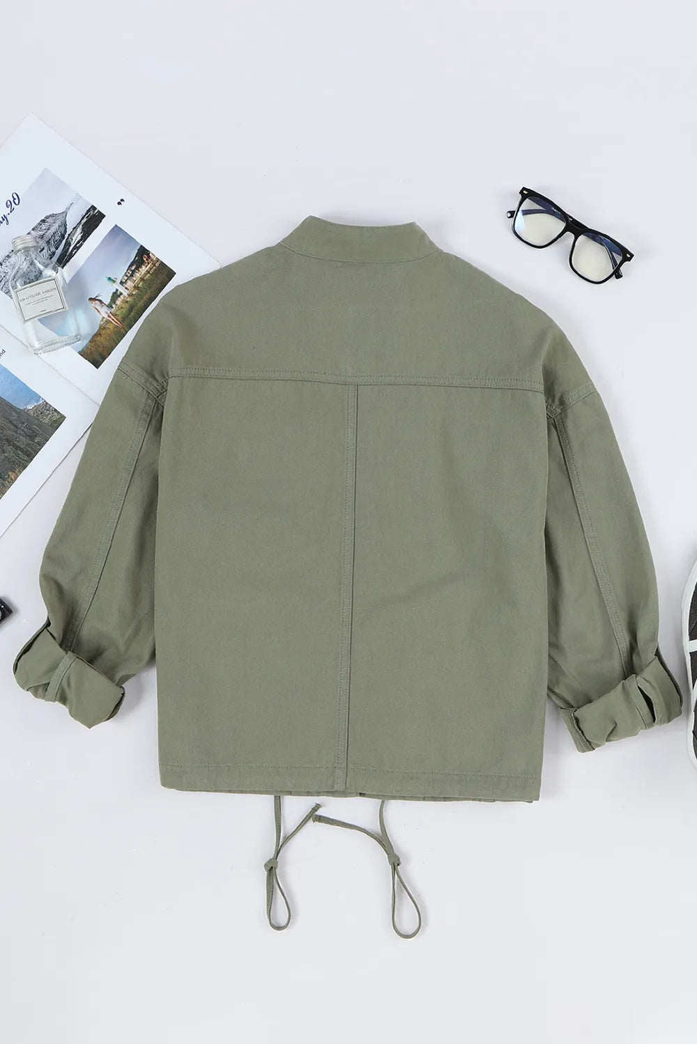 Drawstring Snap Down Dropped Shoulder Denim Jacket