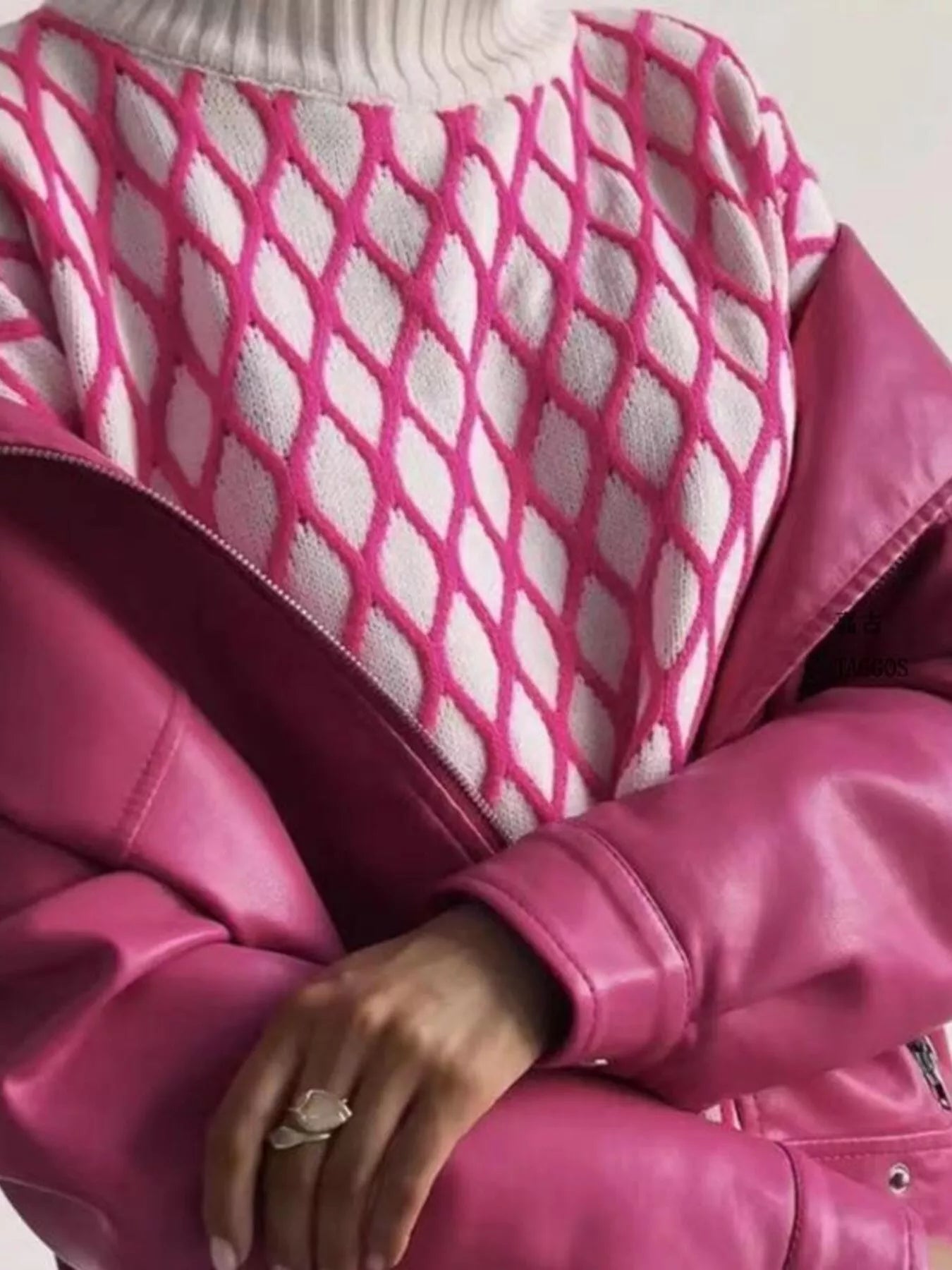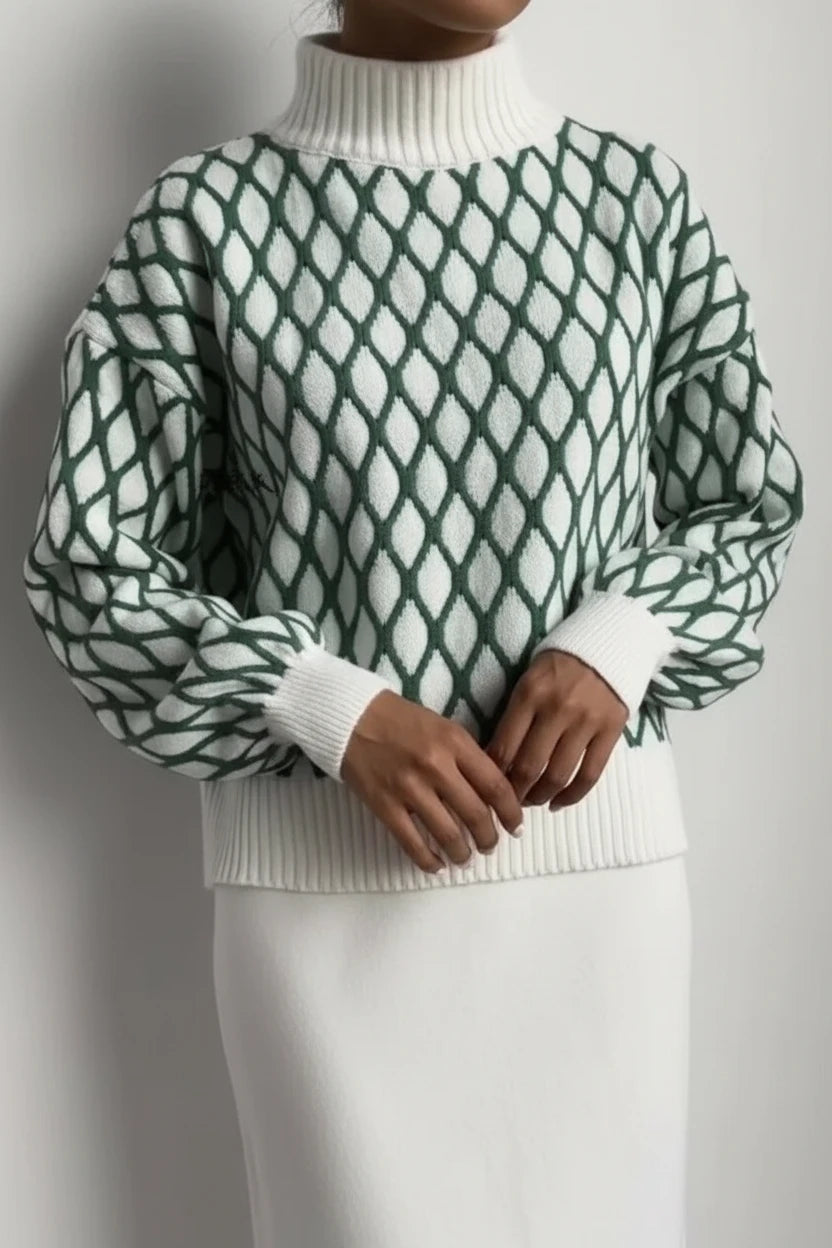 Daverri Fashions Geometric Pattern Turtleneck Sweater