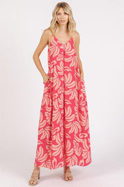 The Printed V-Neck Maxi Cami Dress with Pockets is a versatile and chic dress that combines style and functionality. With a flattering V-neckline and a maxi length, this dress is perfect for a variety of occasions. The addition of pockets adds practicality and convenience to this fashionable piece, making it a must-have in your wardrobe. Whether you dress it up with heels or keep it casual with sandals, this dress is sure to make a statement.