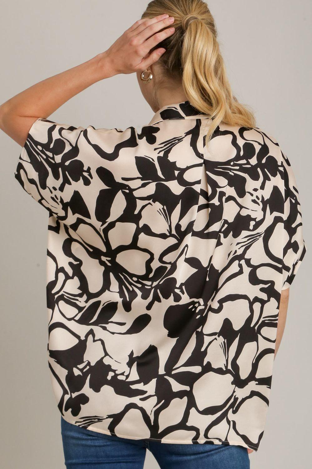 Umgee Full Size Two Tone Print Button Down Top with hidden Plackets