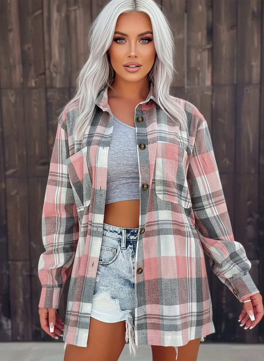 Pocketed Plaid Collared Neck Shacket