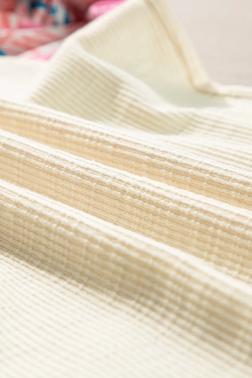 Printed Round Neck Balloon Sleeve Sweatshirt